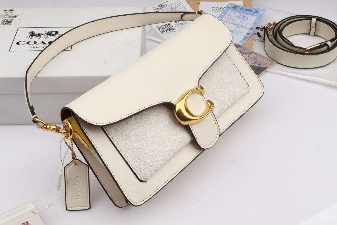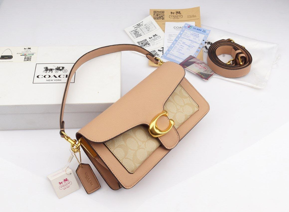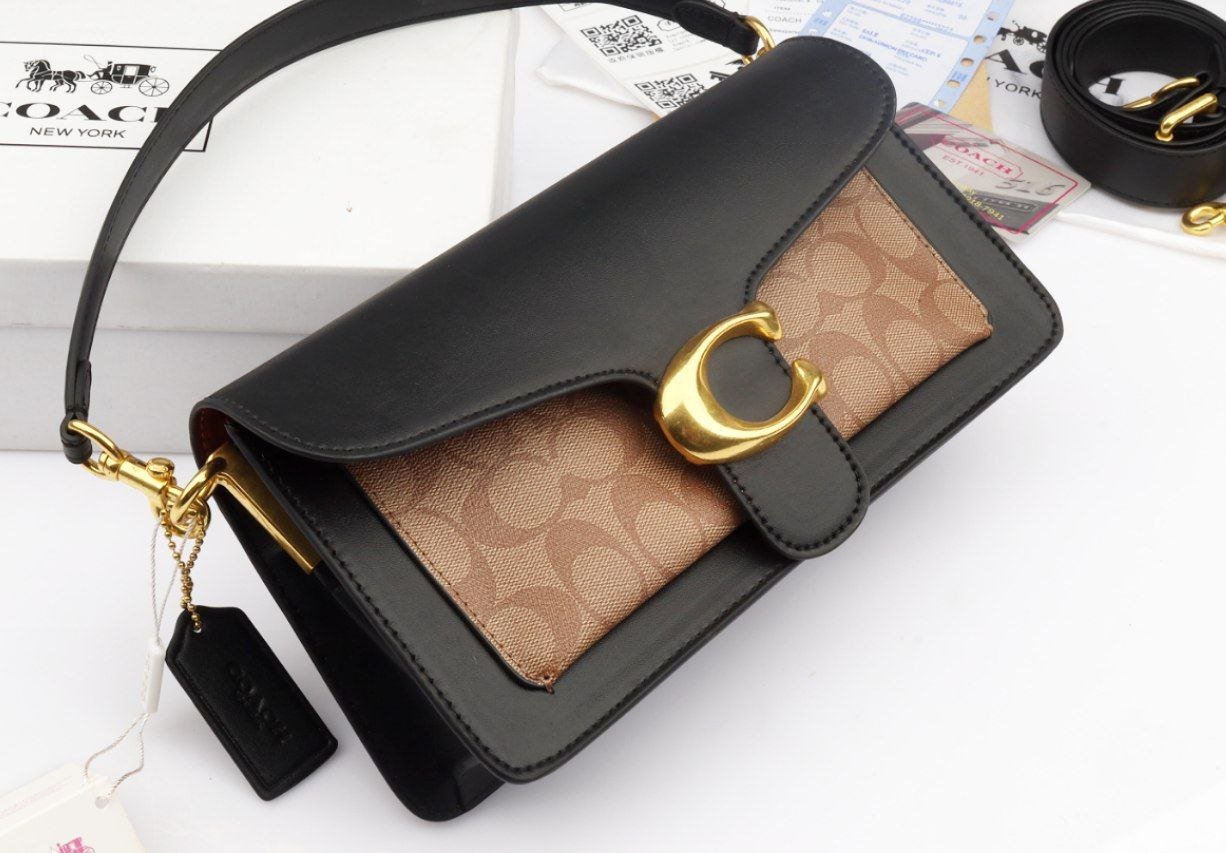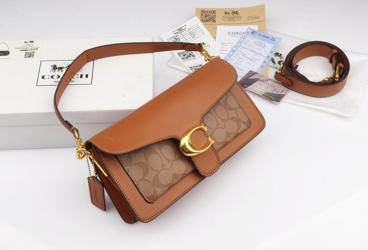 Experience timeless elegance with this stunning Coach shoulder bag. Designed in a rich tan leather paired with the iconic Coach signature canvas, it features a luxurious gold “C” clasp that adds a premium touch to the overall look.