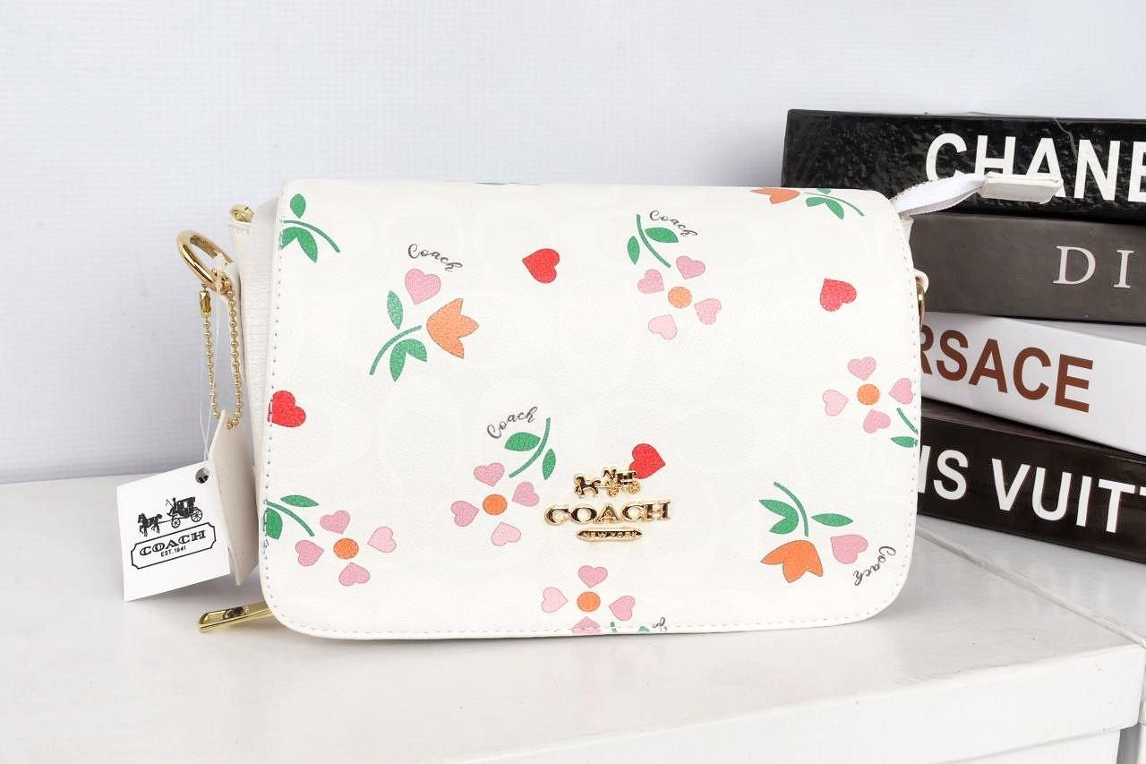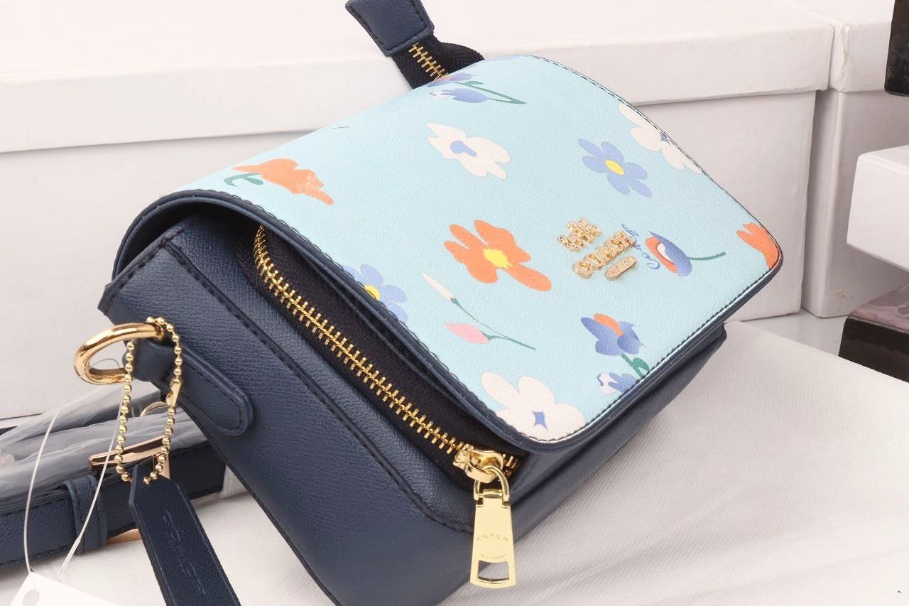 A stylish new-season Coach bag featuring a fresh floral print and modern color palette. Crafted from high-quality leather, this elegant piece is finished with branded hardware and a logo-stamped adjustable strap for a premium look and feel.