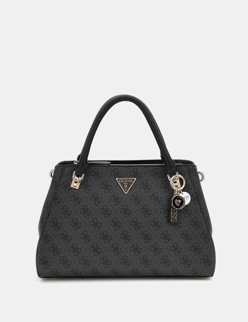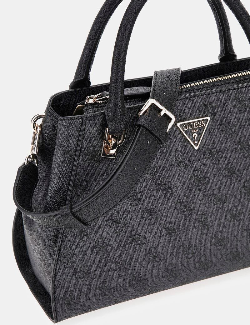 Guess elegant mirror-original handbag crafted with a refined monogram design. Comes with a matching dust bag and a detachable, adjustable shoulder strap for versatile styling. Features premium hardware details and a structured silhouette, perfect for both everyday wear and chic outings.