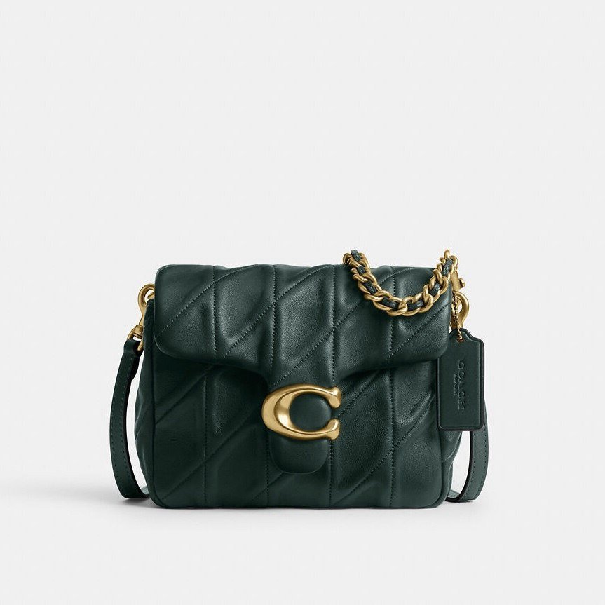 A luxurious Coach handbag crafted from soft, quilted leather with a rich padded texture.